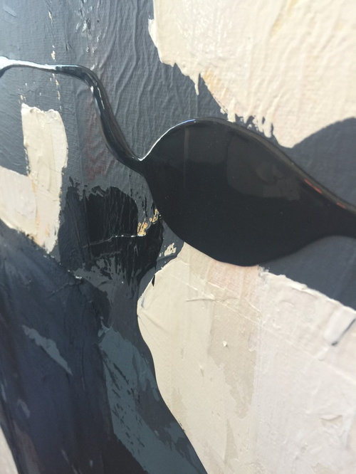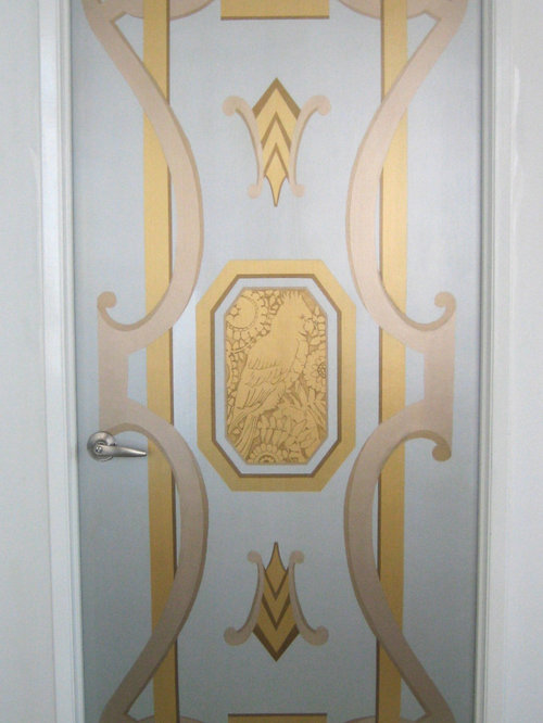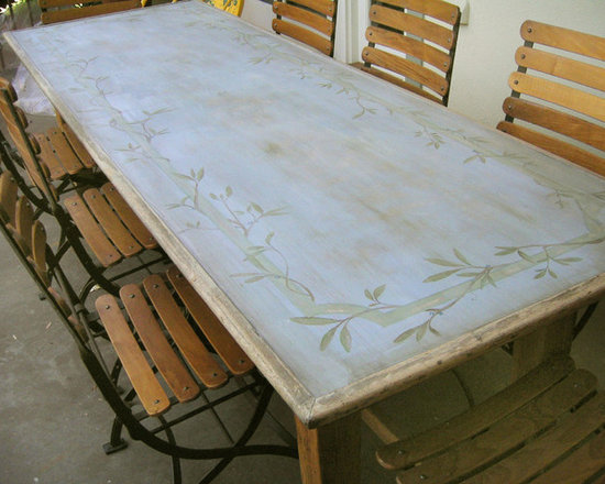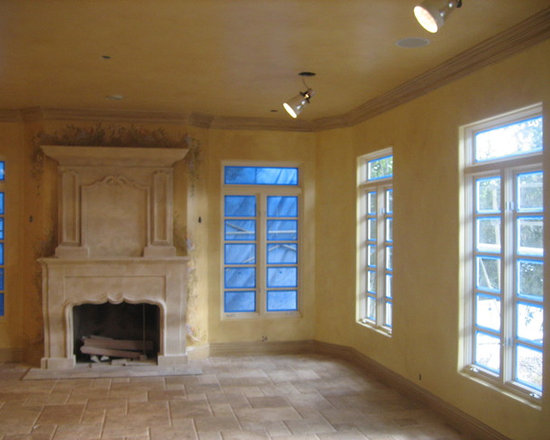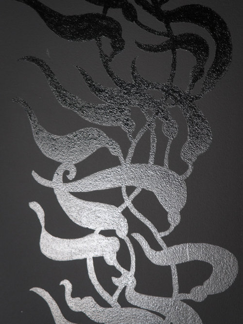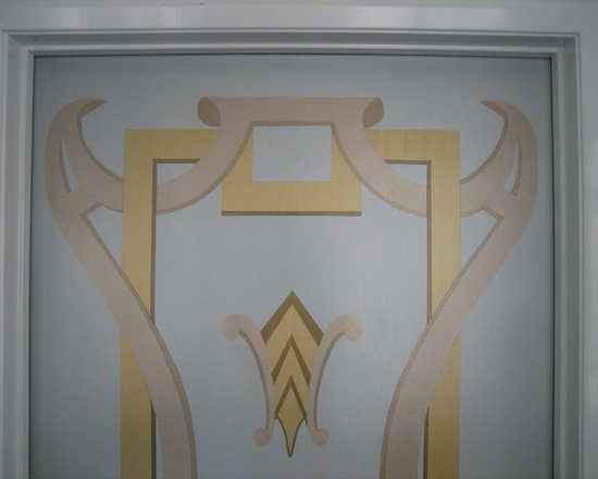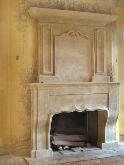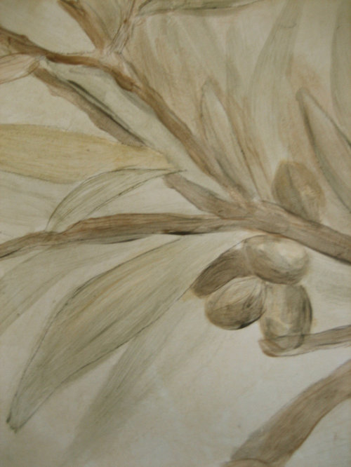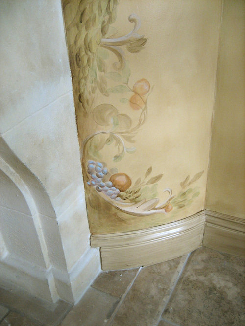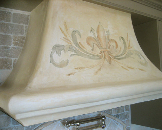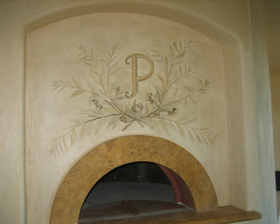 My client commissioned me to paint a fleur de lis on the hood of her stove and a monogram of their last initial with olive branches over the pizza oven.