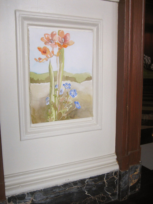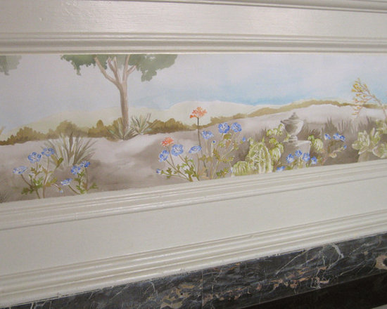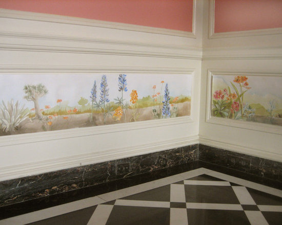 This project was part of a benefit held at Greystone Mansion in Los Angeles, each room was done by a different designer. I painted these California wild life landscapes within each panel of the room. It's sort of a porch but more of a loggia or sunroom.
