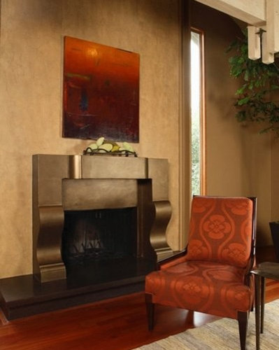 Bronze painted finish on fireplace